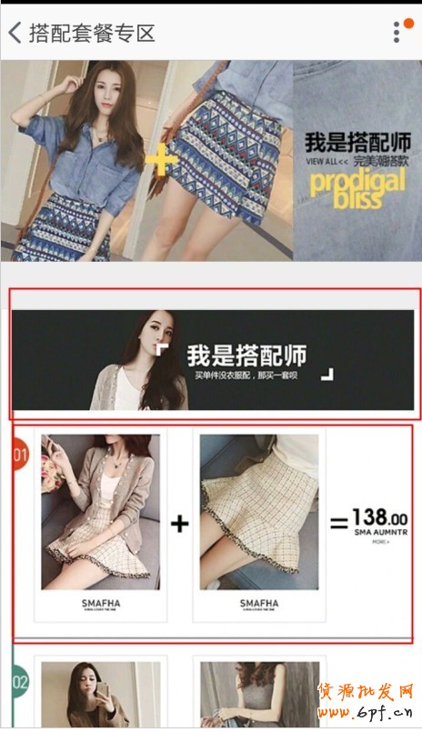 大家可以看到,這個女裝店鋪就是在首頁設置了這樣一個模塊,點擊進去就是一列搭配套餐。
