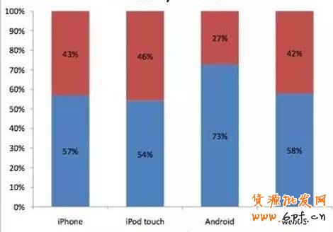 我來(lái)揭曉答案,先給大家看個(gè)圖:這是手機(jī)系統(tǒng)男女比例圖。紅色是女性,藍(lán)色是男性。
