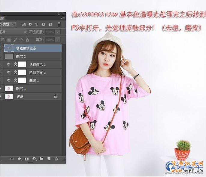 在camera raw基本色溫曝光處理完之后轉(zhuǎn)到ps中打開,先處理皮膚部分,例如祛痘,磨皮等。
