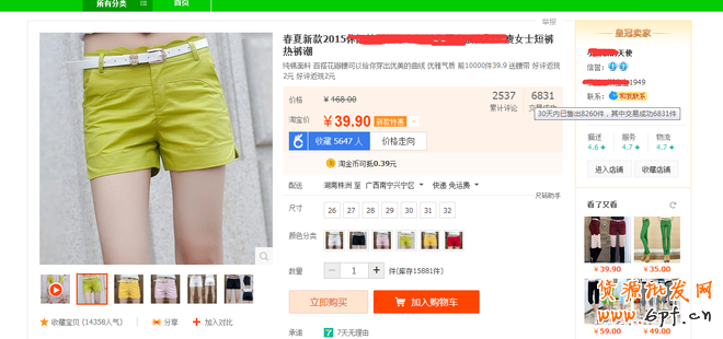第三期選詞:糖果色短褲 大碼女士高腰熱褲 注意紅色字體銷量已達(dá)6584件。