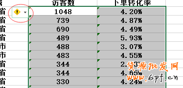 首先看第一張圖,不知道大家發(fā)現(xiàn)有什么跟平時看到的數(shù)據(jù)源有什么不同沒有,可能很多細心的朋友已經(jīng)發(fā)現(xiàn)了,就是所有數(shù)字的單元格左上角都有一個綠色的小三角。這個小三角是什么含義呢,小三角的含義是,單元格里面不管是什么樣的一個內(nèi)容,不管是數(shù)據(jù)也好,百分數(shù)也好,它存儲的一個邏輯是文本的一個形式,簡單來說就是跟漢字是一樣的,我們數(shù)字的話,他有大小,有比較,能夠進行一些算法,但是如果說是漢字的一個相加,就完全沒有一個邏輯了,比方說,四川省和遼寧省不能進行一個邏輯上的相加。所以要使得數(shù)字變成真正的數(shù)值。選擇中這一片要轉換的區(qū)域之后,這片區(qū)域的左上角會有一個黃色的小標,
