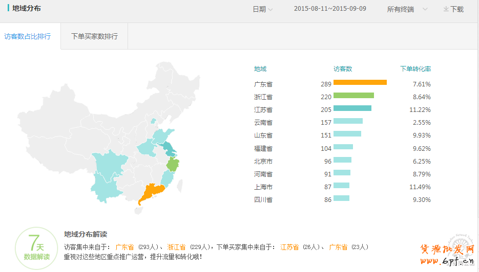 對(duì)于主要流量來(lái)源的訪客地域與下單地域重點(diǎn)投放。
