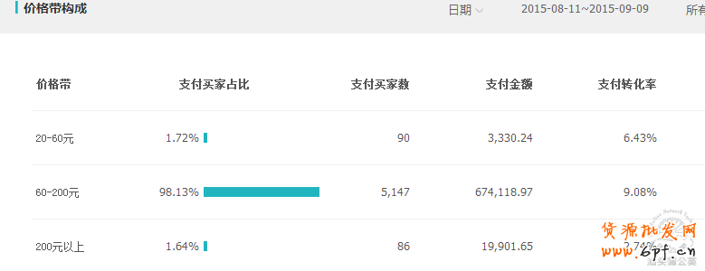 3、搜索人群(性別占比+交易價(jià)格帶構(gòu)成)