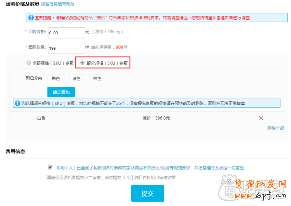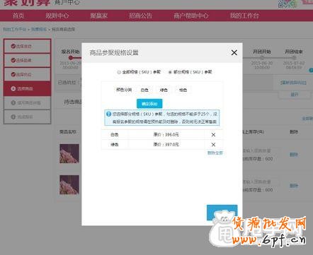 三、如果是選擇部分規(guī)格商品參聚可以選擇“部分規(guī)格參聚”,部分規(guī)格參聚同樣會影響參聚價格(按照部分規(guī)格30天最低價校驗(yàn)),如下圖: