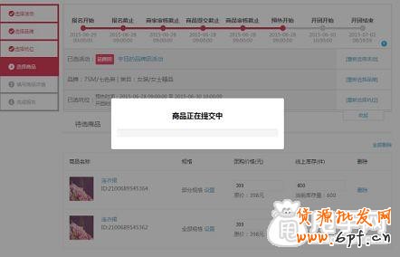 四、在需要參聚的商品價格庫存都填寫完畢后,可以點(diǎn)擊“提交”,此時系統(tǒng)進(jìn)行商品提交操作,如果出現(xiàn)異常會直接告知錯誤提示,如圖: