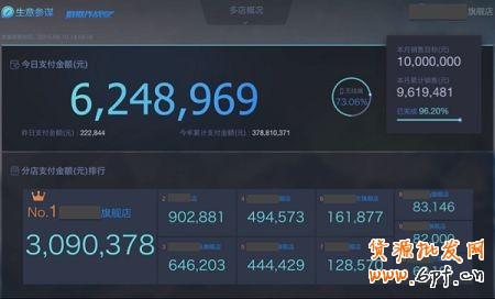 2、單店概況屏:實時展現(xiàn)店鋪核心數(shù)據(jù),店鋪經(jīng)營好壞一目了然;