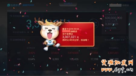 為了配合雙十一大促的氣氛,生意參謀的數(shù)據(jù)作戰(zhàn)室大屏還能設(shè)置慶祝模式的特效,根據(jù)店鋪的實際經(jīng)營情況自定義設(shè)置目標值:目標達到多少金額的時候,就可以開啟慶祝模式,自動跳出生意參謀的“福鹿”。