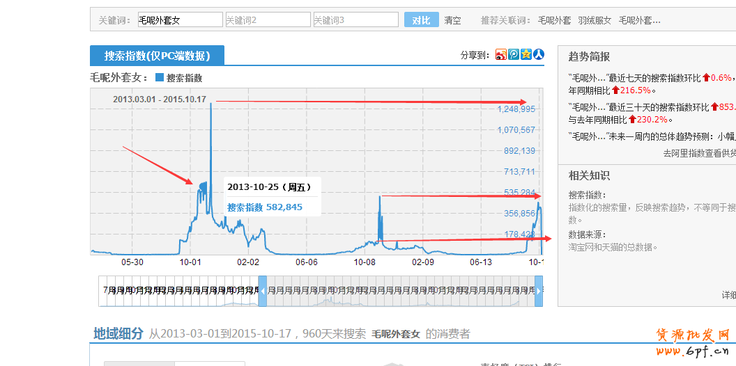 這是一張淘寶指數(shù)“毛呢外套女”這個關(guān)鍵詞查出歷年的淘寶指數(shù),從圖上可以看出,13年雙11前夕是58萬多,雙11當天是124.8萬,增長了215%,14年雙11前期是17.8萬最多,雙11當天是53.5萬,增長了301%,看到這里,還用我繼續(xù)說下去嗎?所以,趁著離雙11還有一段時間,盡可能的積累店鋪和單品的權(quán)重吧。你應(yīng)該懂了~~