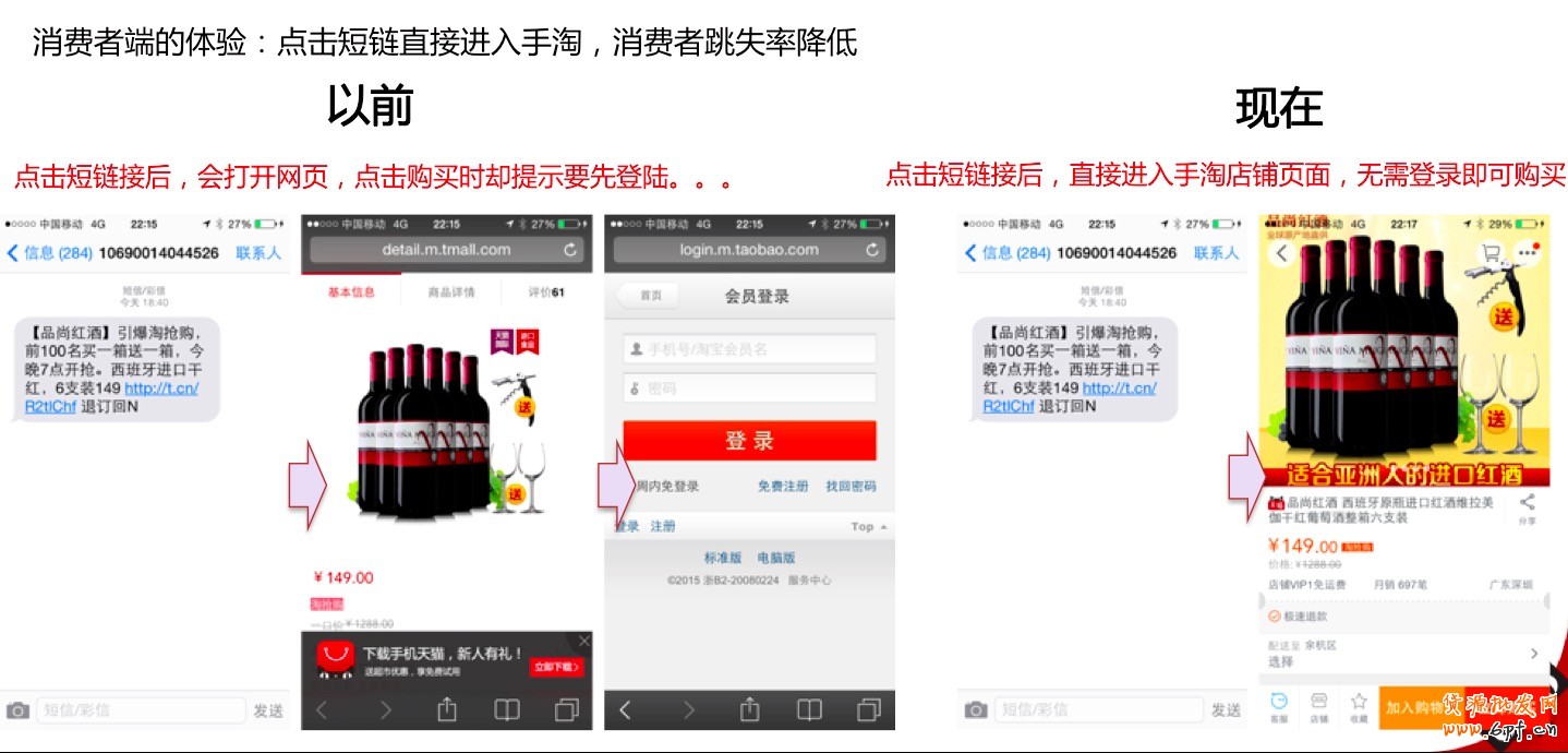 官方新版淘短鏈,消費(fèi)者點(diǎn)擊后直接進(jìn)入您的手淘店鋪?lái)?yè)面,不再像以前非官方的短鏈一樣打開(kāi)的實(shí)際是個(gè)網(wǎng)頁(yè),還需要重新登陸后才能購(gòu)買,從而大大縮短了消費(fèi)者的操作鏈路。