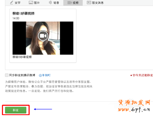 (PS:只能先把視頻上傳到素材管理,才能發(fā)的)