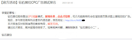 1、鉆石展位即將推出CPC結算模式,展現(xiàn)免費,點擊才扣費,花幾毛錢就有機會在淘寶首頁焦點圖上展示你的廣告。