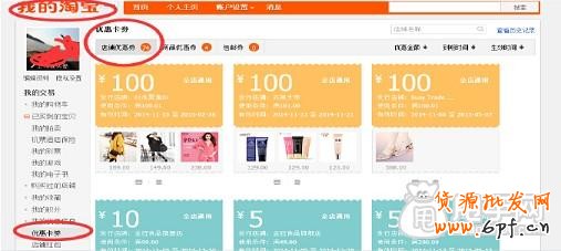 2、我的淘寶-優(yōu)惠卡券-店鋪優(yōu)惠券