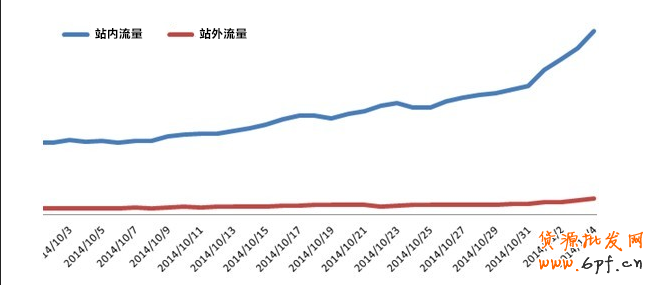 下圖是2014年雙11前的站外流量增長(zhǎng)情況: