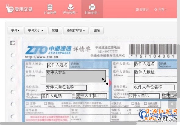 快遞單模板項(xiàng)目:移動(dòng)位置,調(diào)整字體、字體的大小、字體粗細(xì),增加減少項(xiàng)。