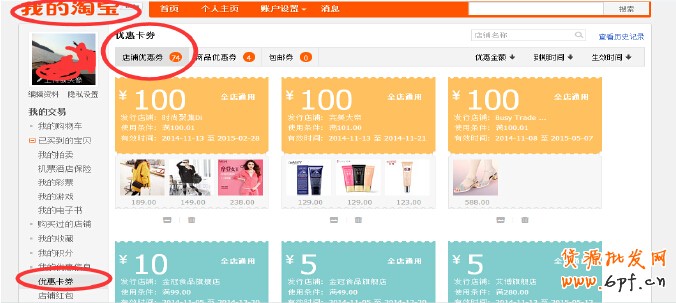 2、我的淘寶-優(yōu)惠卡券-店鋪優(yōu)惠券