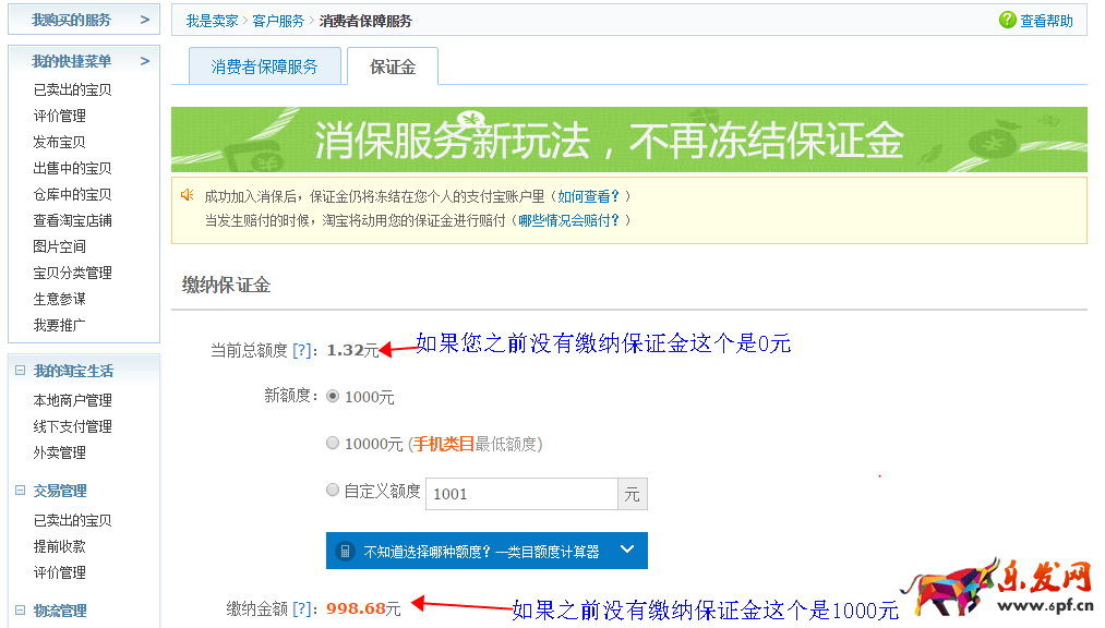 2、原來已發(fā)布了商品但是未繳納保證金的賣家,會(huì)陸續(xù)進(jìn)行催繳,若賣家未在規(guī)定時(shí)間內(nèi)補(bǔ)繳保證金店鋪會(huì)被屏蔽,具體執(zhí)行時(shí)間待后續(xù)通知;(自行繳納1000元保證金后則不會(huì)被影響)