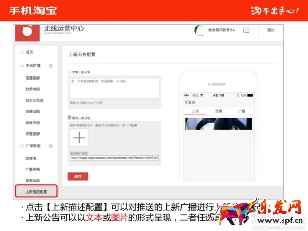 無線運(yùn)營(yíng)中心(wuxian.taobao.com)經(jīng)過一年的更新迭代,有了很多新功能,也優(yōu)化了很多老功能,微淘君在淘寶論壇制作了簡(jiǎn)易教程,指導(dǎo)大家一起來玩轉(zhuǎn)2015最新版無線運(yùn)營(yíng)中心操作!
