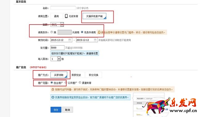 推廣范圍:必須選擇自主推廣,否則貓客專享優(yōu)惠券的范圍在券面上無法展示;