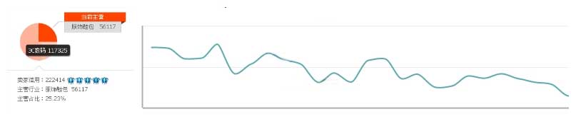這是一家大麥電商服務(wù)的服飾鞋包店鋪,但是主營(yíng)占比只有25.23,超過(guò)80%的成交通過(guò)低價(jià)的3C產(chǎn)品獲得,盡管該店鋪的信用等級(jí)提升,但是可以看到店鋪日均流量一直處在下滑的趨勢(shì)。