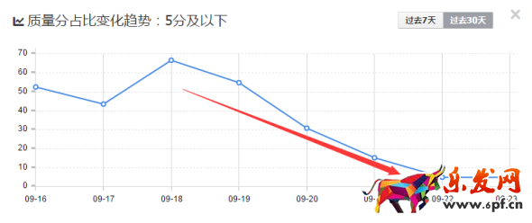 這兩幅圖,顯示的,最初這款產品一開始有60%的低于5分的詞,40%是6分的詞,可謂是大部分詞的質量分都很低。