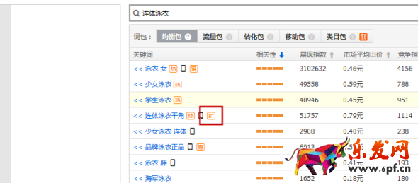 如果出現(xiàn)了“擴”這個詞呢,就代表這是推薦的淘寶移動搜索下拉框出現(xiàn)的詞。