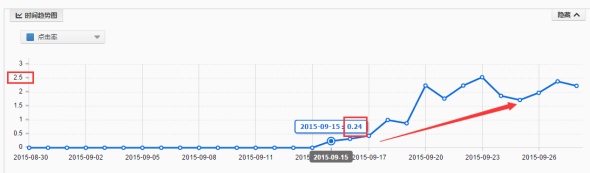 從上可以看出,這款產品,在一開始的點擊率只有0.2左右,經過四五天的優(yōu)化,點擊率達到了2.5以上。