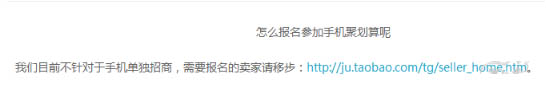 無線聚劃算:無線的聚劃算和PC端的一樣,包含商品團(tuán),品牌團(tuán),生活匯,聚名品等多個(gè)聚劃算活動(dòng),都在聚劃算后臺(tái)報(bào)名。但目前手機(jī)聚劃算沒有單獨(dú)報(bào)名入口。