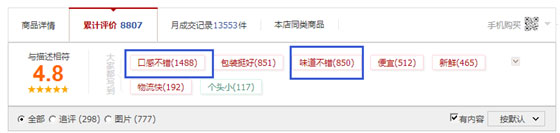 那么,問題在于,我們應該如何去尋找消費者在購買某一類商品時,真正的關注焦點是什么?其實以前也跟大家講過,這個主要是看累計評價。從淘寶上搜索,找到你最直接的、賣的最好的競爭對手,看他的累計評價,消費者基本會把自己最關注的焦點,在累計評價中展示出來。在找競爭對手的時候,一定要注意根本:最直接。