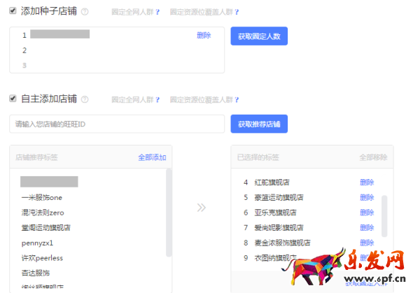 在定向設(shè)置上面也是根據(jù)投放目的不同定向人群也需要分別設(shè)置,在6月上旬投放的時(shí)候主要是針對(duì)年中大促,那么在此期間我們需要的就是流量,不管新客戶、老客戶、同類目?jī)?yōu)質(zhì)客戶都是店鋪定向設(shè)置對(duì)象,在設(shè)置自主添加店鋪的時(shí)候范圍可以擴(kuò)大,把同類店鋪的客戶盡可能多的引進(jìn)本店,而在7月正常投放的時(shí)候就可以把自主店鋪減少,一般建議設(shè)置15個(gè)店鋪以內(nèi),盡量精確;同時(shí)還有更重要的一部分客戶需要通過(guò)dmp來(lái)圈定。