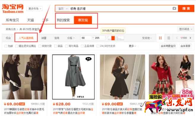 我們來看下這張圖,框框選中的地方,再來看下,現(xiàn)在的寶貝數量,競爭一下就放低了不少,而本身的淘寶搜索也是具有人氣排序的。