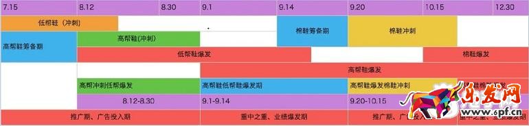 3.低幫鞋的商品籌備時間為:6.17——7.15 高幫鞋:6.17——8.10 棉鞋、雪地靴:9.10——9.20