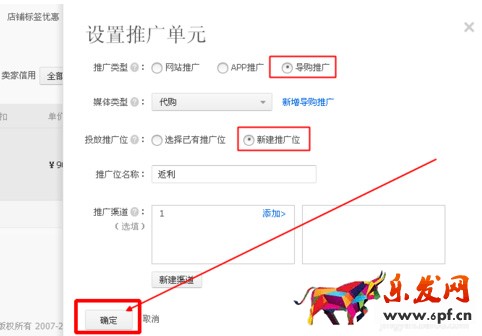 六、在設(shè)置推廣單元時,有幾個選項(xiàng)需要淘寶客勾選的,推廣類目、媒體類型、投放推廣位,既然今天是教大家從店鋪中賺錢,當(dāng)然是選導(dǎo)購?fù)茝V、媒體類型:代購,最后點(diǎn)擊確定。