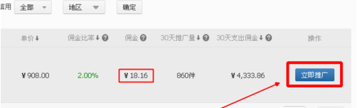 五、只要商品加入淘寶客傭金計(jì)劃,肯定能搜索出來,如下圖。能看到傭金比率、傭金、推廣量、支出傭金等信息,我們點(diǎn)立即推廣。