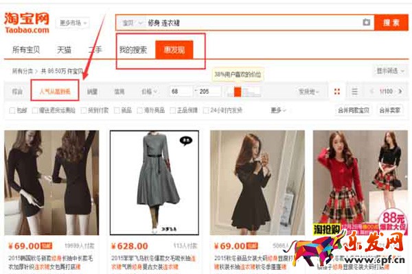 一、淘寶惠發(fā)現(xiàn)默認是從高至低排序的,如下圖,紅色框,除了商品自身帶有一定搜索人氣外,商品競爭也相對降低。
