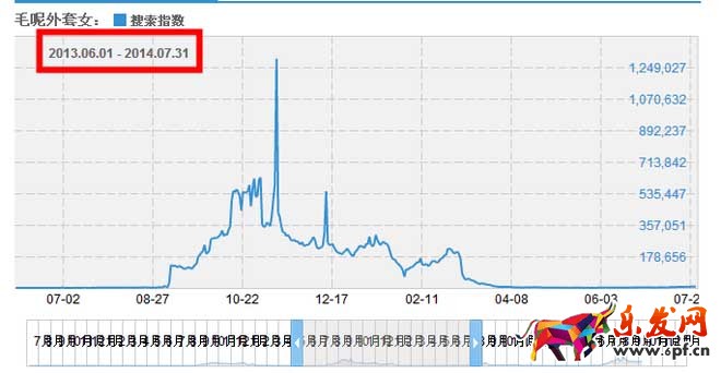 從下圖看到毛呢外套女從每年的九月份就可以慢慢的走上坡了,一直可以賣到第二年的3月份左右,周期比較長,前景也比較好,當(dāng)然這個也分為春秋冬季款。但是大家不要以為一個每個寶貝都可以賣這么久,還是要經(jīng)過賣家統(tǒng)計分析之后。