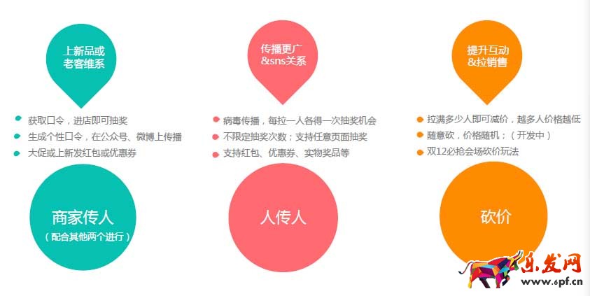 與人傳人、砍價(jià)刀等CC互動(dòng)的玩法不同,商家傳人玩法的邏輯是BC互動(dòng),比較適合作為商家與用戶溝通的渠道。