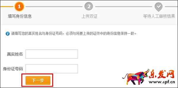 (3)輸入您的真實(shí)姓名和身份證號(hào)碼,點(diǎn)擊【下一步】;