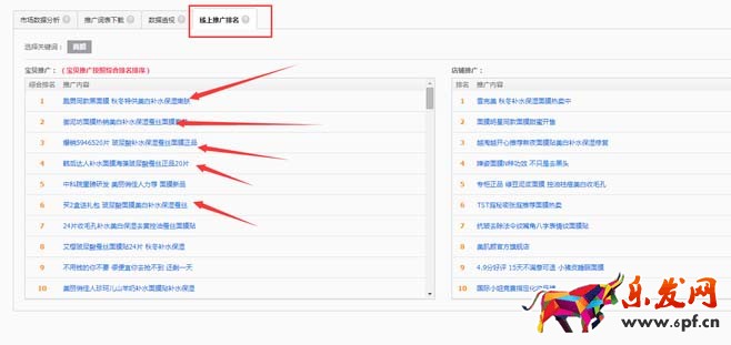這個圖相信大家都能看懂吧,藍(lán)色和黃色的標(biāo)識分別是寶貝數(shù)量和展現(xiàn)量,下面橫著的一排是出價區(qū)間,全是區(qū)間價格,好在區(qū)間都很小,測試幾次是能做到精確值的。這些數(shù)據(jù)能讀取到的有效參考指標(biāo)有:查詢關(guān)鍵詞下寶貝的最高出價(貓叔查詢的是面膜 最高27.8 ) 最高展現(xiàn)獲取量出價3.9。