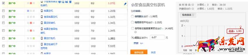 由于我們選擇的關(guān)鍵詞權(quán)重比較高,所以出價(jià)上我們卡到第一位上出價(jià)也不會(huì)很高。