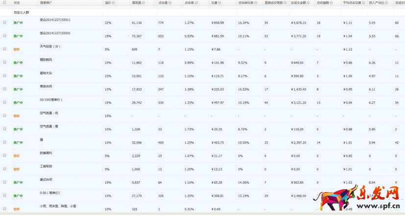 以上是測試了一周的數(shù)據(jù),對單獨維度測試了之后,再根據(jù)單獨的維度效果進行組合,不斷的組合、暫停測試,這樣可以發(fā)現(xiàn)哪些維度的效果相對較好。