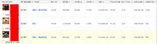 分析:目前直通車推廣這3款寶貝,但是寶貝2的點擊率是明顯較低的,ppc也是較高于其他2款寶貝的,同時此款寶貝相比其他2款寶貝點擊率低的一個原因是:此寶貝的一個成交筆數(shù)上是亞于其余2款寶貝的。