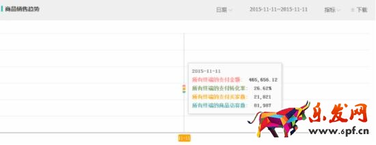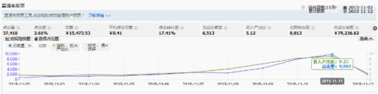 3、通過這一系列的分析調(diào)整后,店鋪以及直通車的引流配合,雙11當(dāng)天店鋪的銷售情況是有較高的突破的。