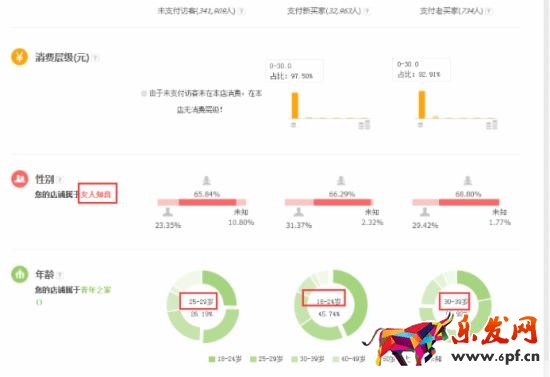 通過淘指數(shù)的數(shù)據(jù)分析,寶貝類目男女買家的占比,女性占比較大,且較集中在25-39歲這個(gè)年齡段間;通過分析店鋪數(shù)據(jù)可以看出店鋪的訪客多數(shù)是經(jīng)濟(jì)型的,消費(fèi)的價(jià)位在0-39元區(qū)間,訪客對(duì)比也是女性的占比加大,年齡層分布在18-39歲間。通過這部分?jǐn)?shù)據(jù)我們直通車經(jīng)過了測(cè)試后,保留這部分轉(zhuǎn)化的數(shù)據(jù)加以測(cè)試,為寶貝開啟人人群定向測(cè)試,提高更多有效流量的引入,促進(jìn)轉(zhuǎn)化提升。