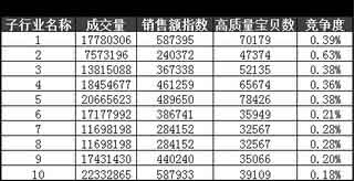 ③ 動銷深度<A店鋪有5款寶貝銷量 10000 、500 、100、50 、10 ,B店鋪也有5款寶貝銷量 5000、3000 、2000、1000 、500,那么B的動銷深度比A大,同比其他不變的情況下,店鋪的權(quán)重肯定高于A>。