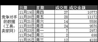 第三步:看自己這一周的日銷量(如何合理提升單量)要跟競爭對手的數(shù)據(jù)做對比。