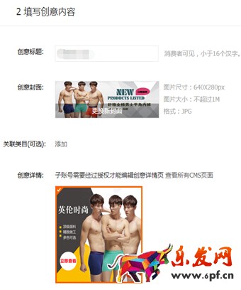 上圖是后臺填寫創(chuàng)意內容的界面,圖片的大小、尺寸還有格式都需要注意。