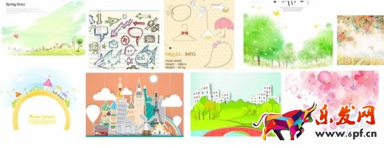 除了顏色之外,在卡通場景中需要用到的素材是漫畫卡通化的,這些素材可以是我們熟知卡通形式,也可以選擇水彩畫形式、剪紙、粉筆畫等等。找這類型的素材可以輸入:水彩畫、卡通、剪紙、粉筆等關(guān)鍵詞來搜素的。以下的素材就是用這些關(guān)鍵詞找出來的: