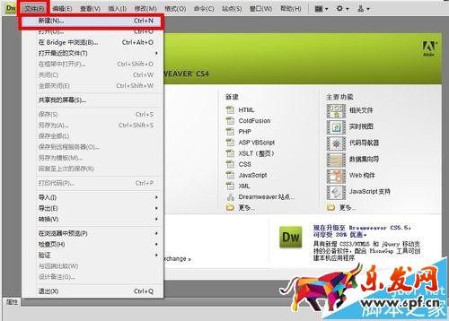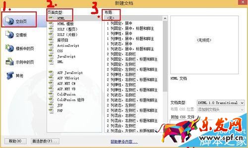 2、好,店招圖片已經(jīng)上傳到空間了。打開DW軟件,選擇文件→新建,在彈出的對(duì)話中選擇空白頁→頁面類型:HTML→頁面布局:無→創(chuàng)建,具體看圖。
