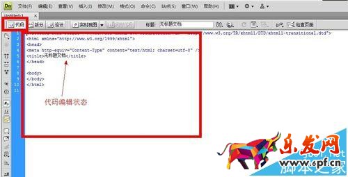 3、點(diǎn)擊代碼,進(jìn)入代碼編輯狀態(tài),見圖。