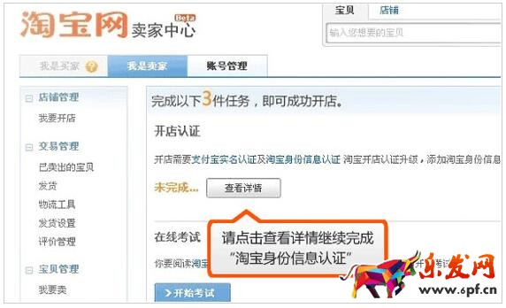 一、登錄淘寶賬號,進入賣家中心,就可以看到后臺管理頁面,點擊查看詳情,繼續(xù)完成“淘寶身份信息認證”